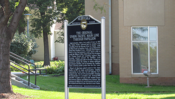 A historical marker for the railroad was erected as the result off a Leadership Sarpy project  at Sump Library. It is shown above near where the first track was laid.